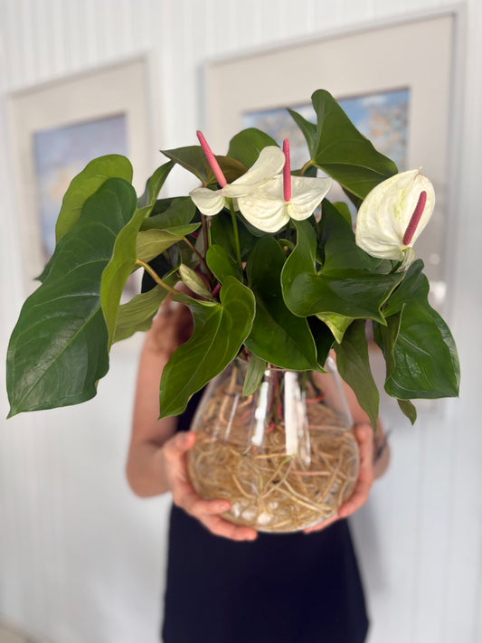 Anthurium Hydroponic Water Plant w/ White Stones